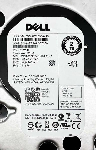 Жесткий Диск Dell 0YY34F 2Tb SAS 3,5" HDD