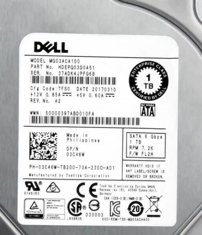 Жесткий диск Dell 3C46W 1Tb SATAIII 3,5" HDD