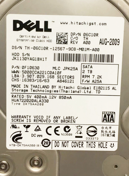 Жесткий диск Dell 6C10R 2Tb SATAII 3,5" HDD