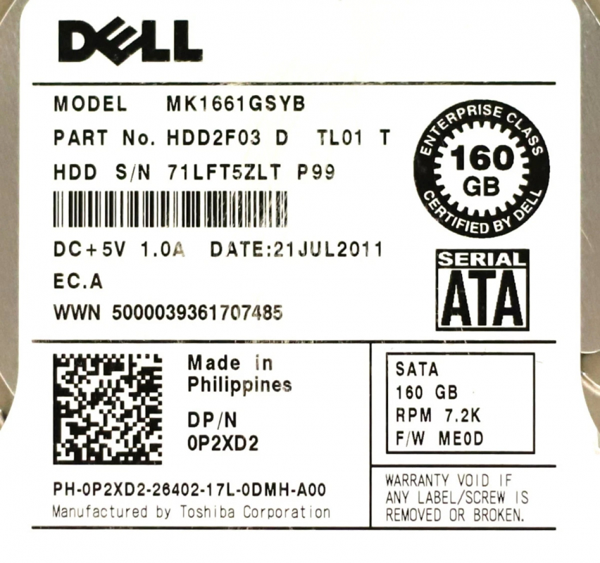 Жесткий Диск Dell P2XD2 160GB SATAII 2.5" HDD