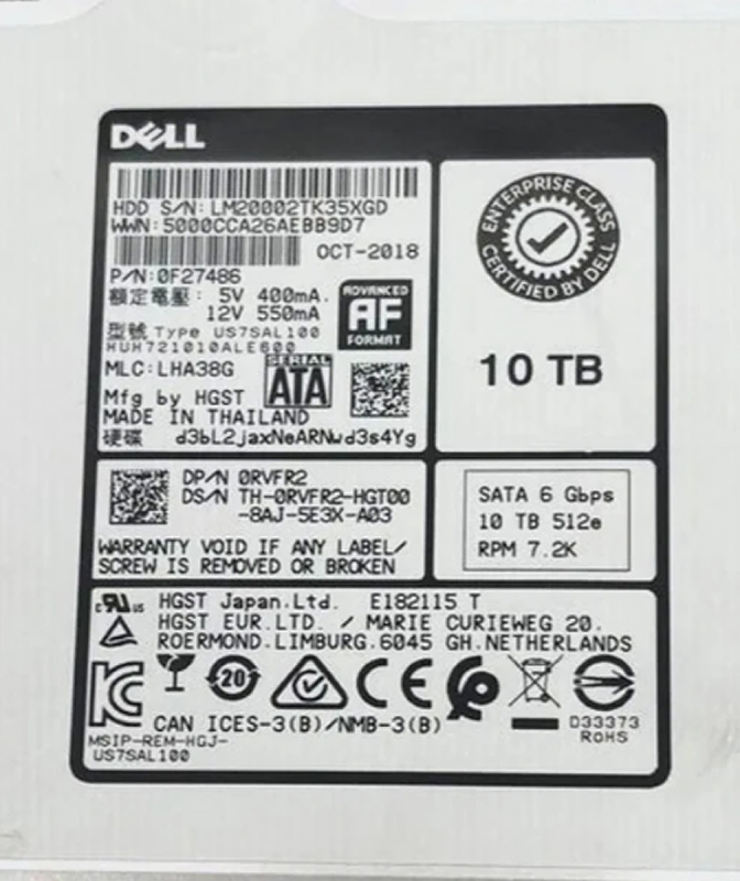 Жесткий диск Dell RVFR2 10Tb SATAIII 3,5" HDD