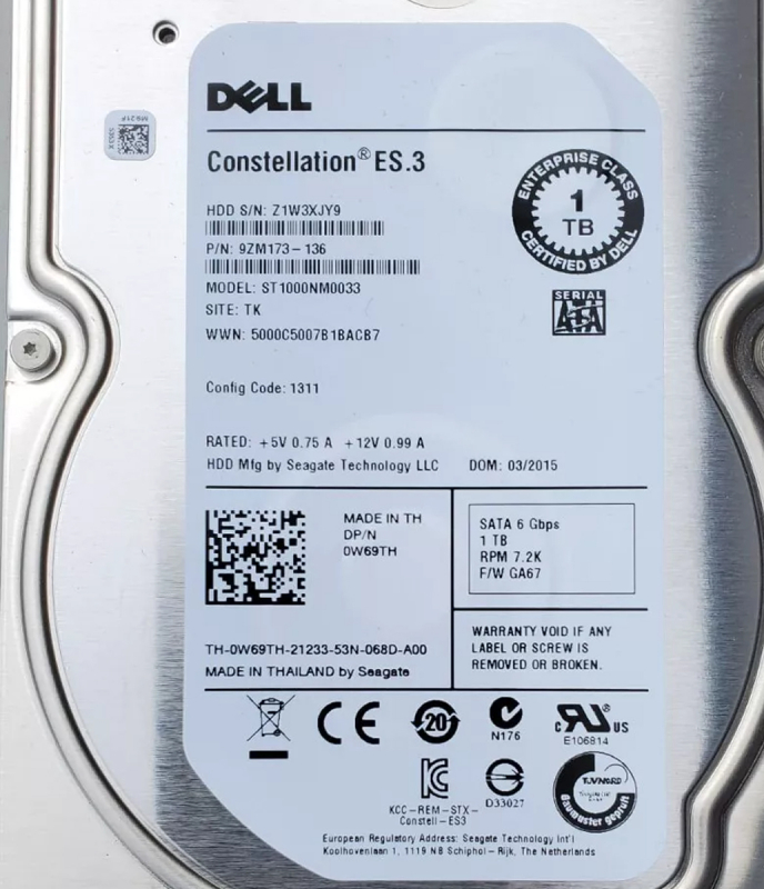 Жесткий диск Dell W69TH 1Tb SATAIII 3,5" HDD
