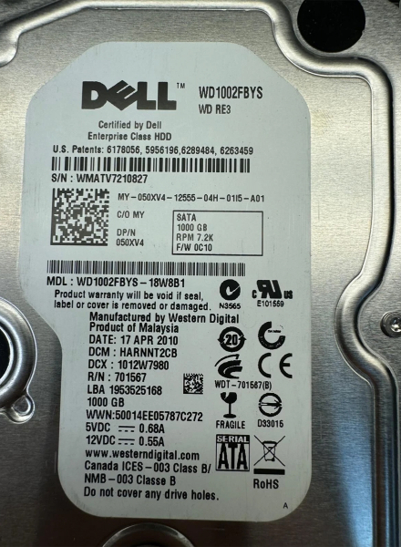 Жесткий диск Dell WD1002FBYS-18W8B0 1Tb SATAII 3,5" HDD