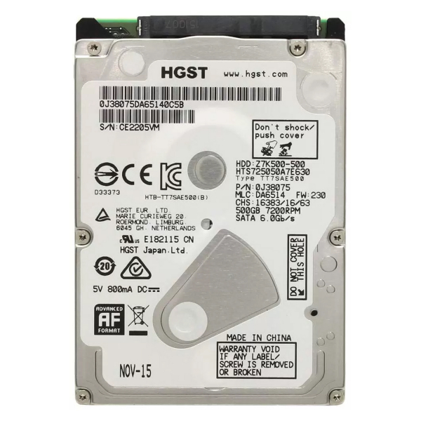 Жесткий диск HGST 0J38075 500Gb 7200 SATAIII 2,5" HDD