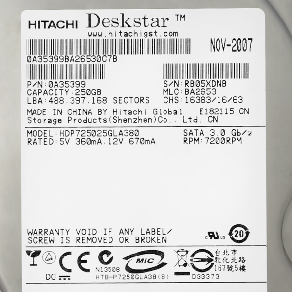 Жесткий диск Hitachi 0A36885 250Gb SATAII 3,5" HDD