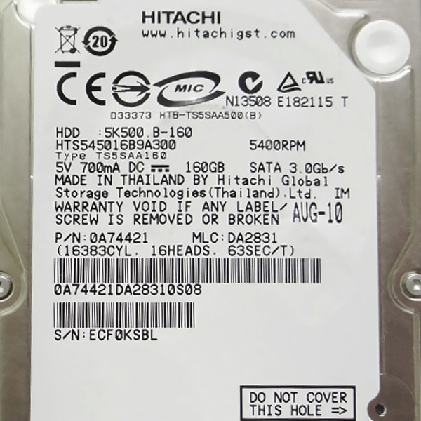 Жесткий диск Hitachi 0A74421 160Gb 5400 SATAII 2,5" HDD