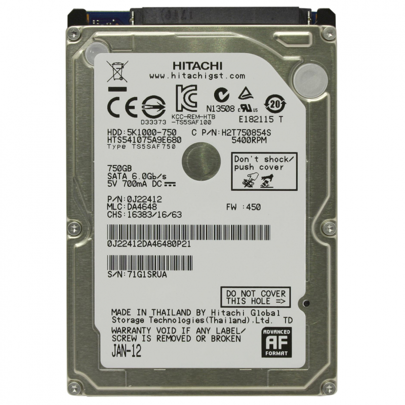 Жесткий диск Hitachi 0J22412 750Gb 5400 SATA 2,5" HDD