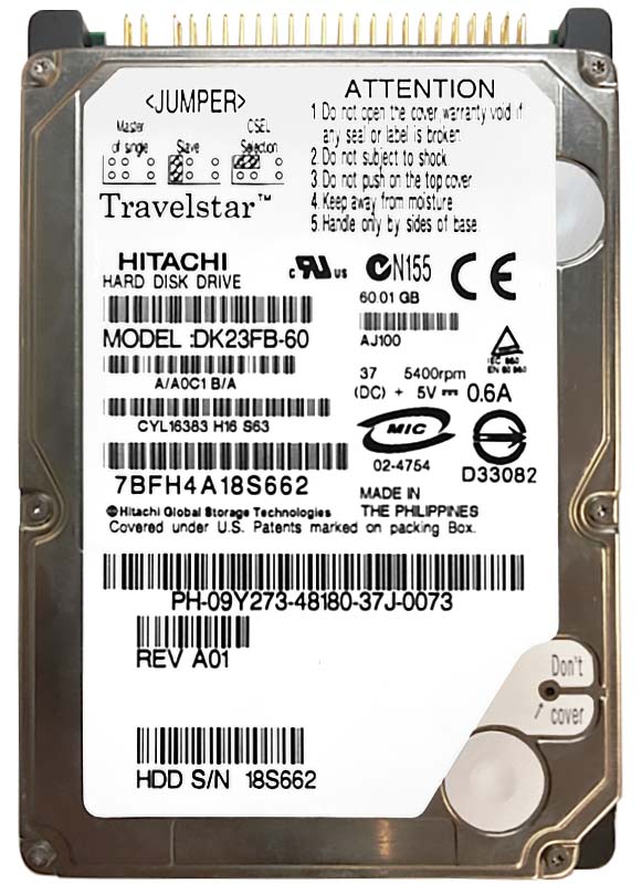 Жесткий диск Hitachi DK23FB-60 60Gb 5400 IDE 2,5" HDD