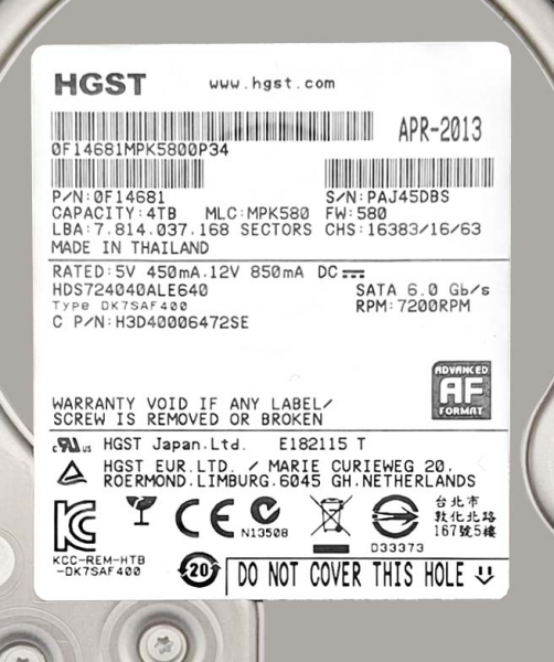 Жесткий диск Hitachi H3D40006472SE 4Tb 7200 SATAIII 3.5" HDD