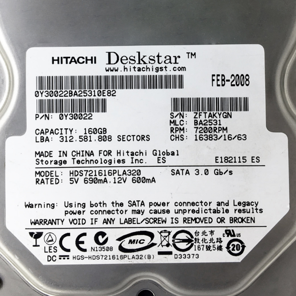 Жесткий диск Hitachi HDS721616PLA320 160Gb SATAII 3,5" HDD