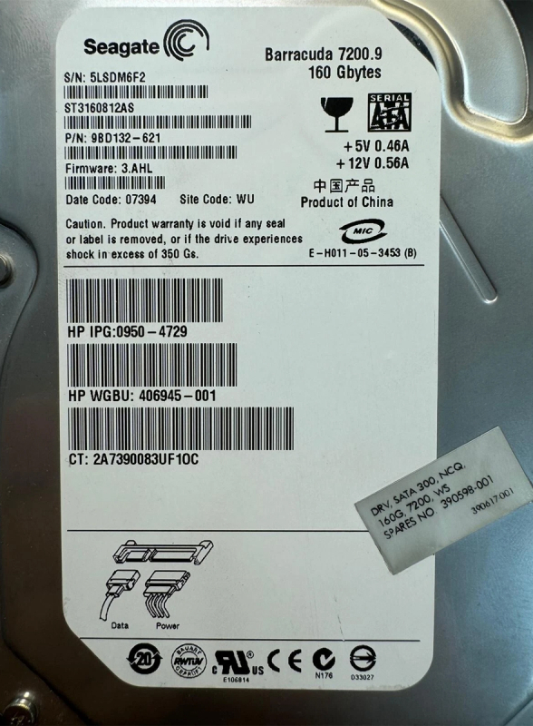 Жесткий диск HP 0950-4729 160Gb SATAII 3,5" HDD