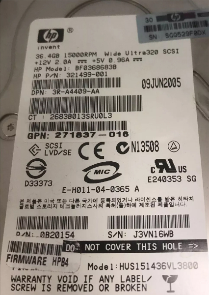 Жесткий диск HP 0B20154 36,4Gb U320SCSI 3.5" HDD