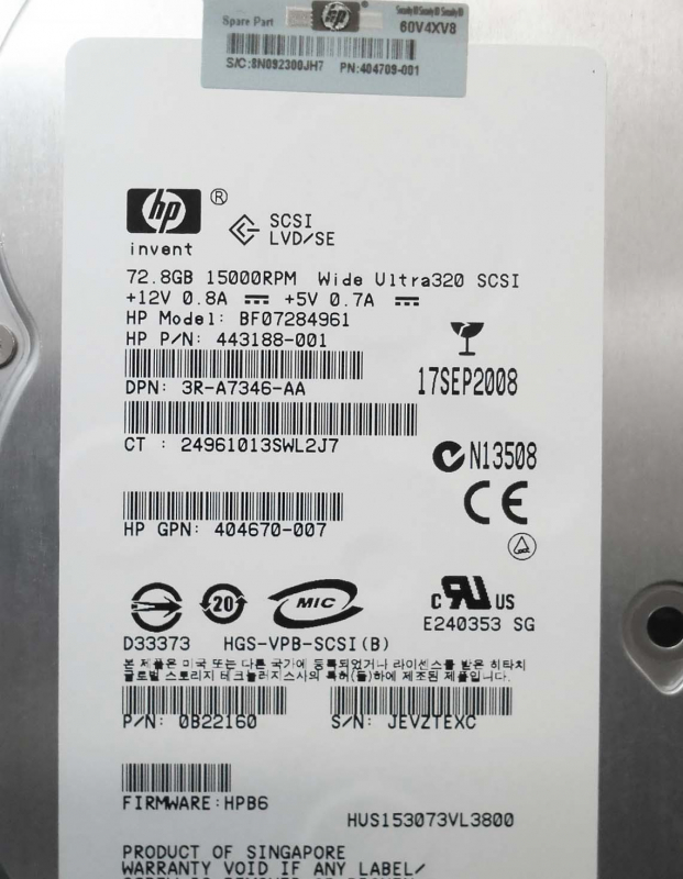 Жесткий диск HP 0B22160 72.8GB U320SCSI 3.5" HDD