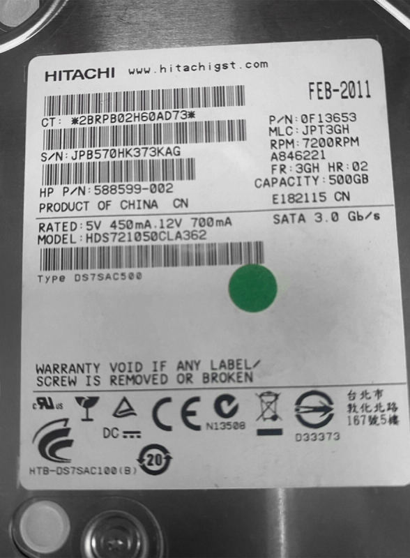 Жесткий диск HP 0F13653 250Gb SATAII 3,5" HDD