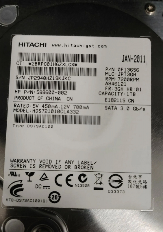 Жесткий диск HP 0F13656 1Tb SATAIII 3,5" HDD