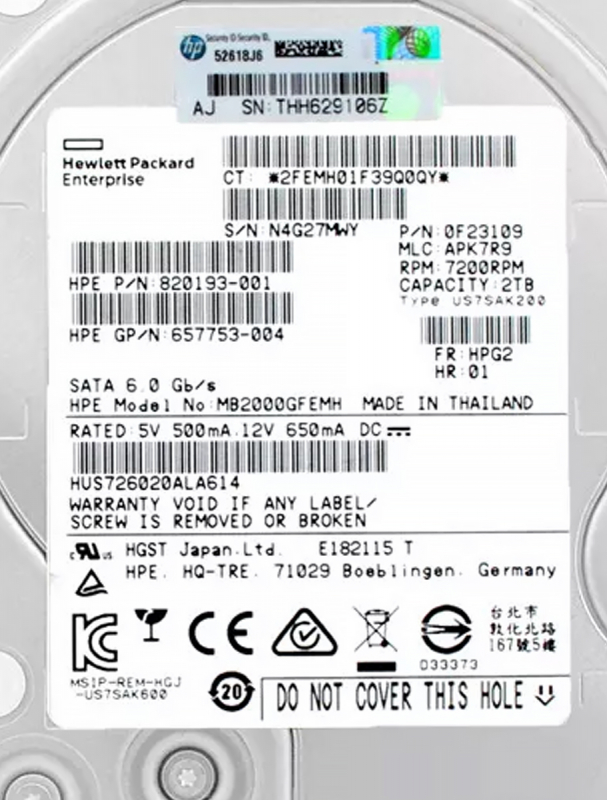 Жесткий диск HP 0F23109 2Tb SATAIII 3.5" HDD