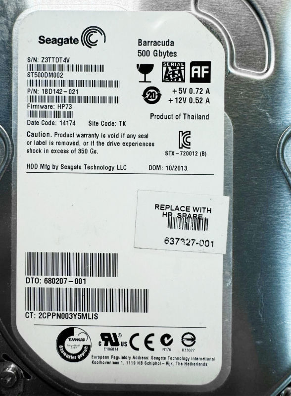 Жесткий диск HP 1BD142-021 500Gb 7200 SATAIII 3.5" HDD