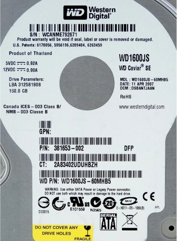 Жесткий диск HP 345712-001 160Gb SATAII 3,5" HDD