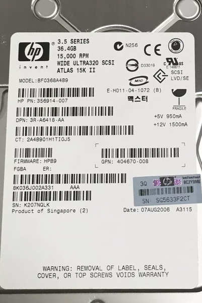 Жесткий диск HP 356914-007 36,4Gb U320SCSI 3.5" HDD