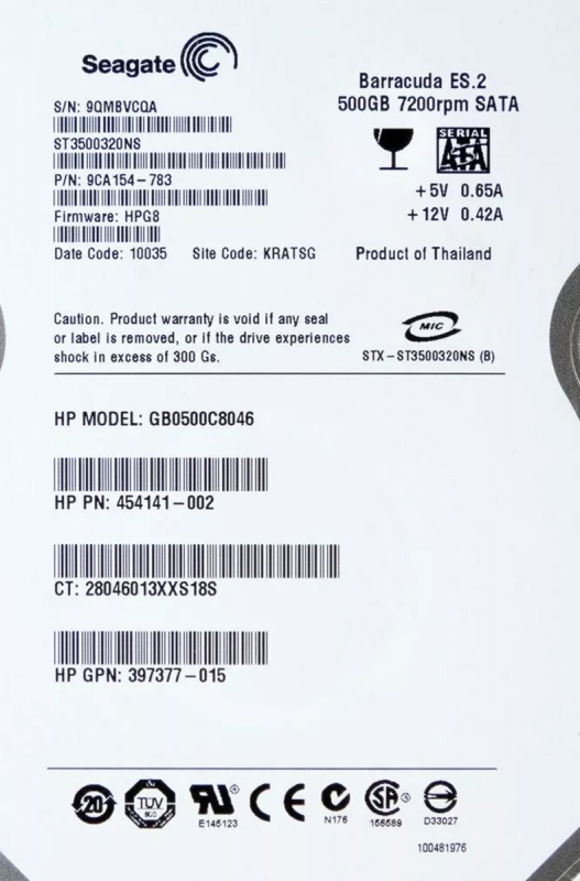 Жесткий диск HP 454141-002 500Gb SATA 3,5" HDD