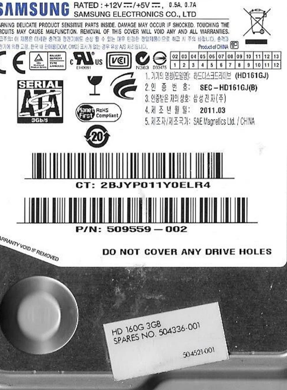 Жесткий диск HP 509559-002 160Gb 7200 SATAII 3.5" HDD