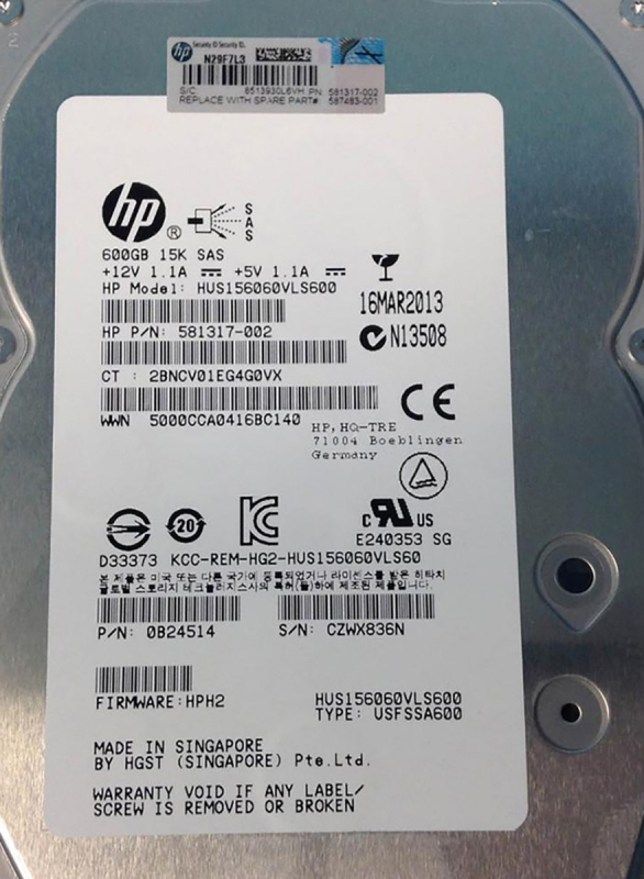 Жесткий диск HP 581317-002 600Gb SAS 3,5" HDD