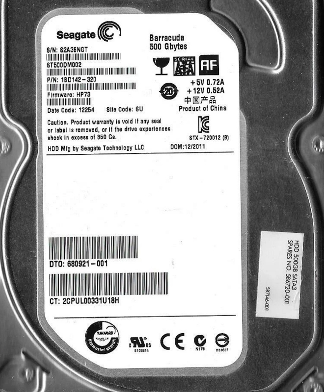 Жесткий диск HP 587146-001 500Gb SATAII 3,5" HDD