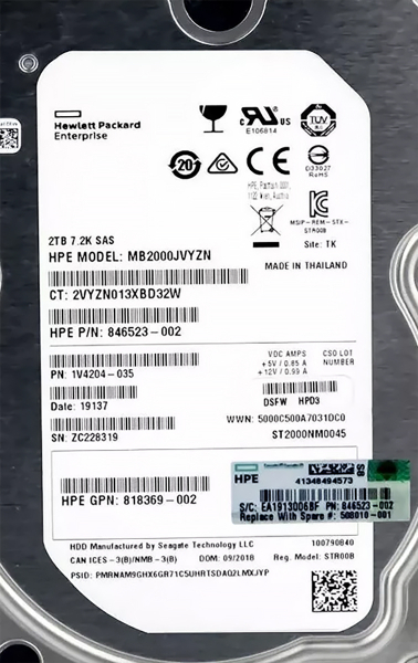 Жесткий диск HP 846523-002 2Tb 7200 SAS 3,5" HDD