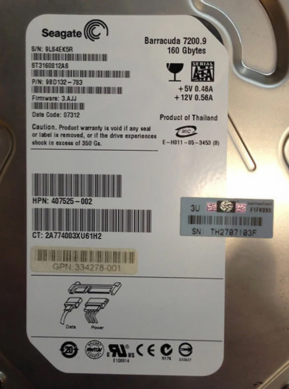 Жесткий диск HP 9BD132-783 160Gb 7200 SATA 3.5" HDD