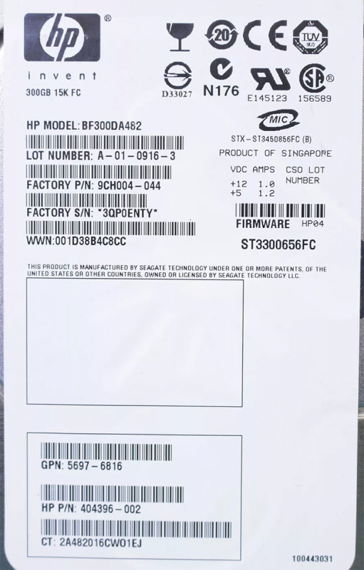 Жесткий диск HP 9CH004-044 300Gb Fibre Channel 3,5" HDD