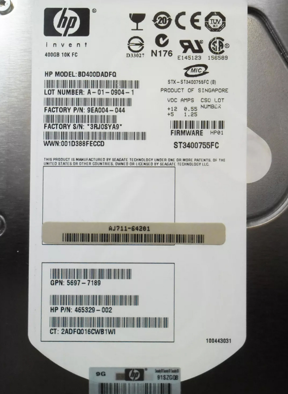 Жесткий диск HP 9EA004-044 400Gb Fibre Channel 3,5" HDD