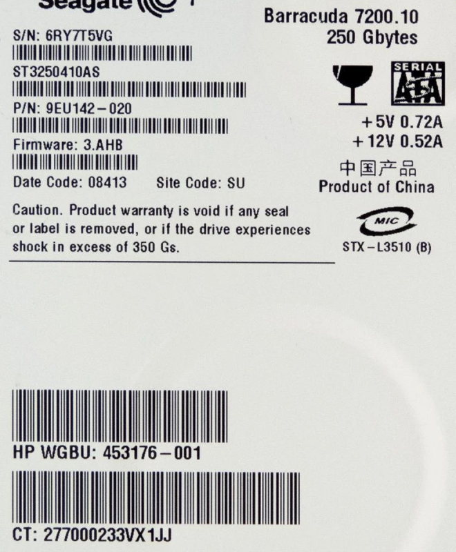 Жесткий диск HP 9EU142-020 250Gb SATAII 3,5" HDD