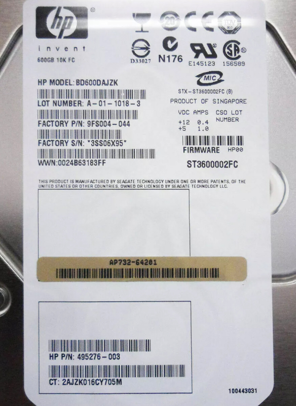 Жесткий диск HP 9FS004-044 600Gb Fibre Channel 3,5" HDD