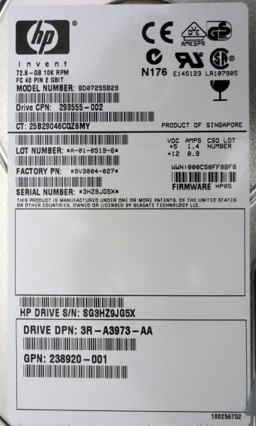 Жесткий диск HP 9V3004-027 72,8Gb Fibre Channel 3,5" HDD