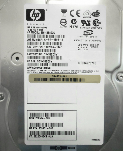 Жесткий диск HP 9X2004-144 146,8Gb Fibre Channel 3,5" HDD
