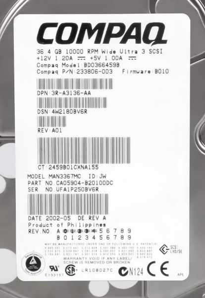 Жесткий диск HP BD0366459B 36,4Gb U160SCSI 3.5" HDD