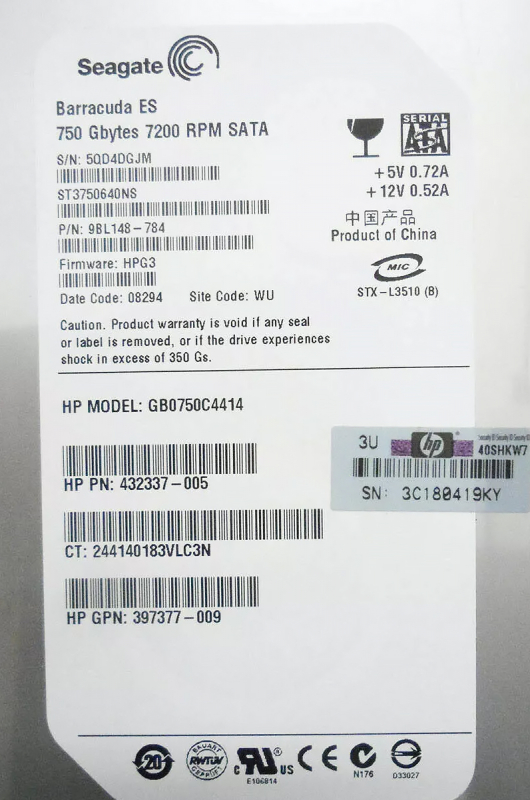Жесткий диск HP GB0750C4414 750Gb SATA 3,5" HDD