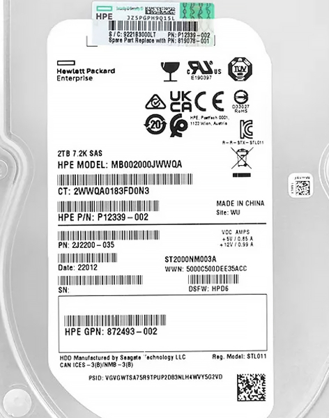 Жесткий диск HP MB002000JWWQA 2Tb 7200 SAS 3,5" HDD