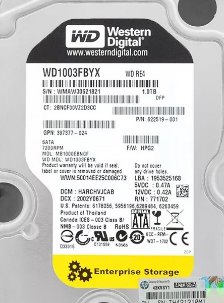 Жесткий диск HP WD1003FBYX-70Y7B0 1Tb SATAII 3,5" HDD