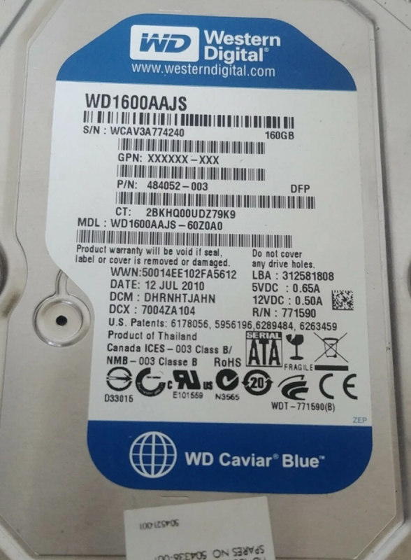 Жесткий диск HP WD1600AAJS-60Z0A0 160Gb SATAII 3,5" HDD
