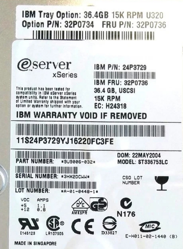 Жесткий диск IBM 32P0736 36,4Gb 15000 U320SCSI 3.5" HDD