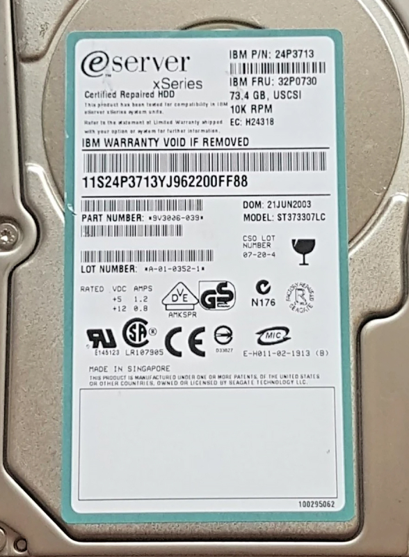 Жесткий диск IBM 9V3006-039 73,4Gb 10000 U320SCSI 3.5" HDD