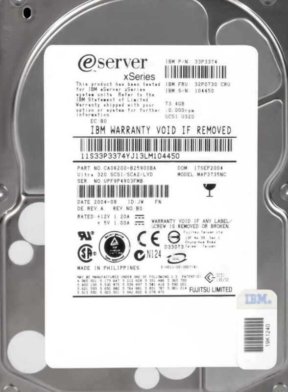 Жесткий диск IBM CA06200-B25900BA 73,4Gb U320SCSI 3.5" HDD