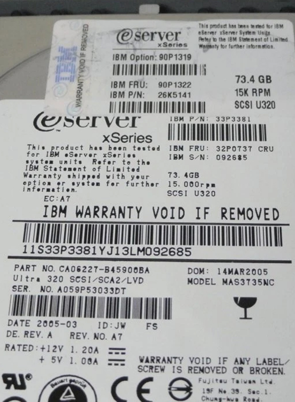 Жесткий диск IBM CA06227-B45900BA 73,4Gb 15000 U320SCSI 3.5" HDD