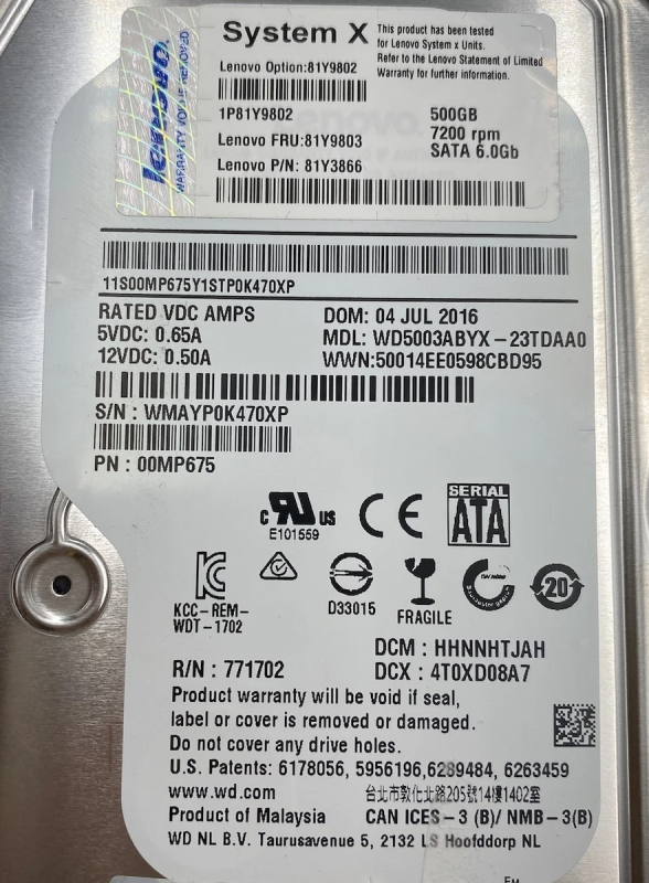 Жесткий диск Lenovo 81Y3866 500Gb 7200 SATAIII 3.5" HDD