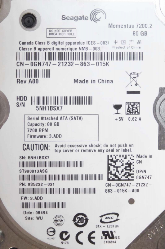 Жесткий диск Seagate 9S5232 80Gb 7200 SATAII 2,5" HDD
