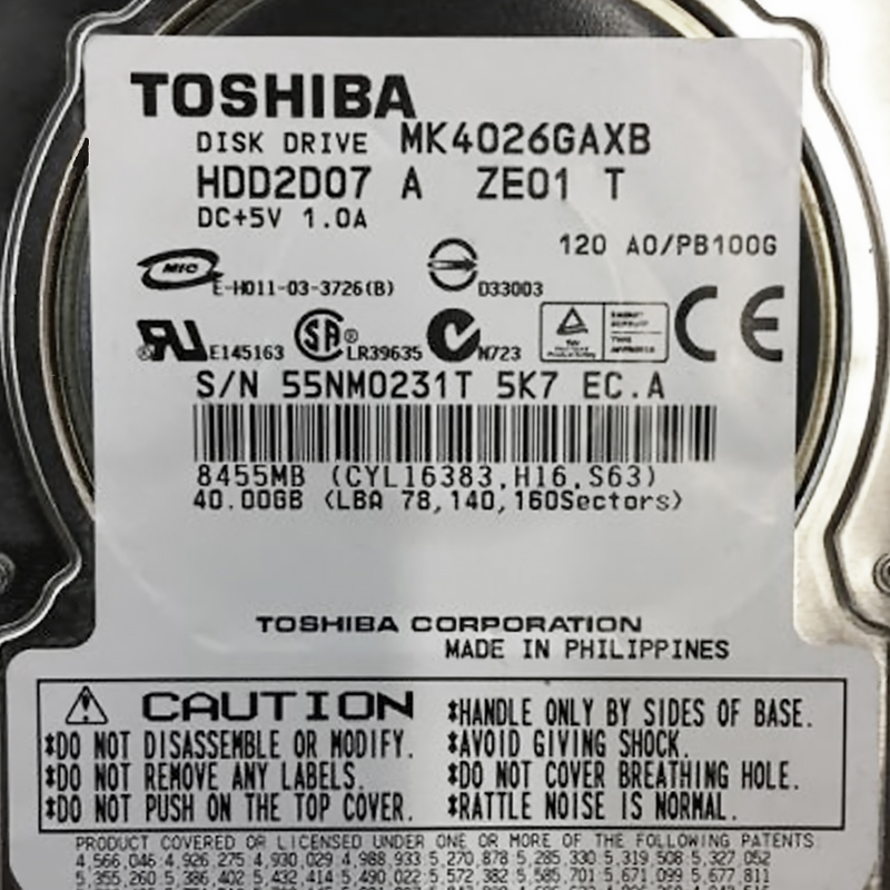 Жесткий диск Toshiba HDD2D07 40Gb 5400 IDE 2,5" HDD