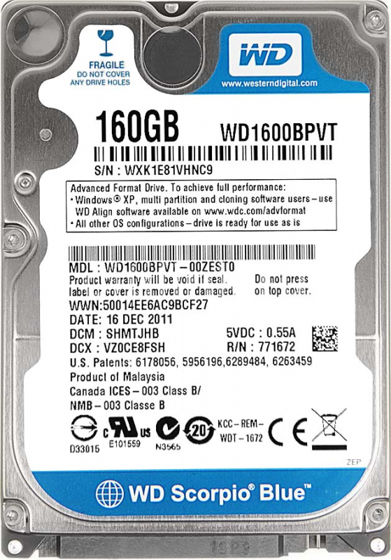 Партномер WD1600BPVT